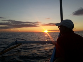 Esta última noche en Bali soñé con mi hermano Mauricio, por primera vez. Era un sueño alegre, estaba toda nuestra familia, íbamos a reconstruir y reformar nuestra casa. Había un sentimiento de alegría, de cambio… Raúl me despertó a las 6AM y nos fuimos en un barco de un pescador local mar adentro a ver el amanecer, y casualmente vimos un grupo de simpáticos delfines. Muy emocionante!.