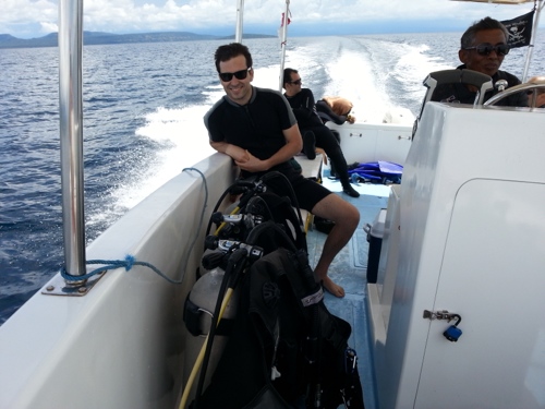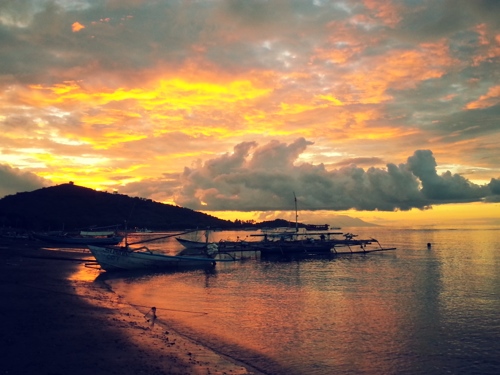 Al igual que en Malasia, aproveché a bucear bastante en un mar transparente y cristalino, templado, lleno de peces y corales. He tenido experiencias increibles y diferentes al resto de mis inmersiones anteriores, como por ejemplo bucear en paredes de corales multicolores transportado sin tener que hacer ningún esfuerzo por corrientes submarinas. Parecía estar en una cinta transportadora, donde la fauna y la flora pasaba delante de mí inundando mis sentidos. Peces coloridos, pequeños tiburones, plantas multicolores, criaturas pequeñísimas, azules deliciosos. Raúl se dedicó al snorkling y quedó copado!. Alquilamos un coche con chófer y recorrimos la isla por sus sitios menos transitados por el turismo: Ubud y alrededores, lagos, Tulamben, Pemuteran al norte de la isla, isla Menjangan…). Atardeceres de ensueño, colores sobre las montañas y los volcanes, barcos de pescadores tipo catamarán de bambú.
