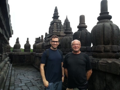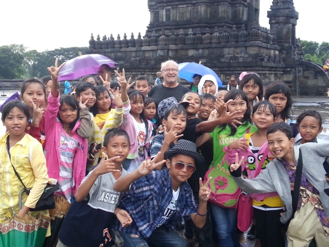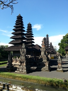 Hay templos familiares en las casas, templos comunitarios en cada lugar de trabajo o actividad (el templo del mercado, el templo del barrio, el templo de la empresa, etc) y los templos públicos. Templos por doquier!. Para entrar al templo hay que vestir adecuadamente para mostrar respeto a los Dioses; los hombres un doble sarong (especie de pareo en la cintura para cubrir las piernas), un satang (especie de cinturón sobre el sarong), y un udang (especie de vincha-turbante). Las mujeres bien cubiertas, siempre que no estén en período menstrual durante el cual no pueden entrar al templo. En una caminata por un arrozal, donde era para seguir derecho y llegar al encuentro de nuestro chófer, acabamos perdidos y sin esperarlo visitamos un templo espectacular, en el medio de la naturaleza, con una paz increible. Tuvimos que pedir ayuda para seguir el camino a los pocos fieles que oraban, y terminamos en un humilde poblado de pocas casas pidiendo ayuda a una familia, muy atentos, deseando ayudarnos y tratarnos como sus mejores huéspedes. Frente a esta experiencia, tomé una foto de familia con Raúl y algunas de las mujeres!.
