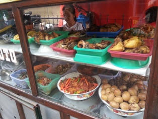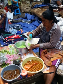 El café plantado en Bali es también uno de los atractivos de la isla. Por un lado, un café húmedo como lo llaman aquí, donde pelan el grano antes de estar seco. Un café suave, no muy oloroso, que se suele preparar de una forma tradicional: se muele muy muy fino, y se coloca junto con el agua en la taza, se mezcla, y se deja unos minutos hasta que la borra baje al fondo. Se bebe sin filtrar, y depende de la cantidad de café que le pongan puede estar bueno o intomable (en mi opinión)!. Por otro lado, el famoso y carísimo Kopi Luwak, un café que puede llegar a costar hasta USD 1000 el kg. Su particularidad es que los granos son previamente ingeridos por un mamífero parecido a una comadreja, llamado civet. Los granos aún frescos qye este arrancó de la planta pasan por su aparato digestivo, y son defecados y luego recogidos para su consumo. Así es, granos de las heces del animal. Según dicen, una especialidad. Raúlo lo probó, yo le di un sorbo, y nada espectacular!.