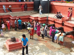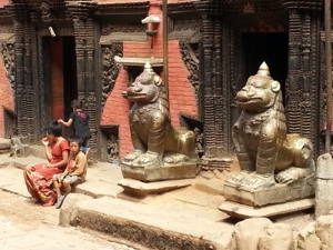 Además de Kathmandú y su hermosa Durban Square (plaza principal) que está llena de vida, templos, mercados, artesanías y edificios típicos newaris de su apogeo en los siglos XIV y XV, visité otras dos ciudades que supieron ser parte del esplendor nepalí de esa época. Las ciudades de Patán y Bhaktapur, que conjuntamente con Kathmandú formaban parte de tres reinos de tres hermanos que rivalizaban por destacarse por sus construcciones, templos hinduístas y riquezas. Las casas con espectaculares balcones trabajados en madera, los templos cargados de imágenes de dioses y coloridas estatuas, los palacios, los baños, continúan siendo el principal atractivo de sus plazas y calles, aún cuando la tierra y el desorden y las condiciones precarias de saneamiento e higiene imperan por doquier.