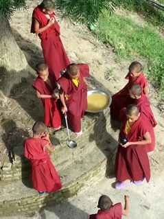 El silencio y la tranquilidad que muchos debían realizar como parte de sus estudios, reinaba durante todo el día y hasta después del almuerzo. Las actividades en el monasterio para mí se limitaron a descansar, leer mucho, conversar un poco con algún que otro monje, verlos rezar, debatir y tocar instrumentos. Básicamente estos días fueron importantes para escuchar y descubrir las bases de la filosofía budista y ponerle ¨cara¨ a tantas cosas que había visto y experimentado en el Tibet. Conocí a un portugués, Nelson, que coincidentemente estaba buscando lo mismo que yo, y con quien sin tener que atenernos al silencio esricto del resto del grupo de vistantes y estudiantes, conseguí compartir intensas charlas y días caminando de templo en templo por el valle.