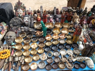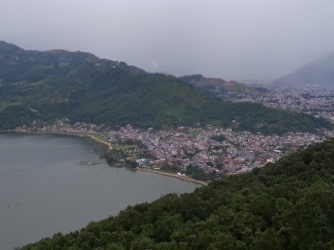 Pokhara es un sitio increible al borde de un lago y rodeado de los Himalayas; centro de deportes de montaña, parapente, y ruta obligada para todos aquellos que vienen a buscar en Nepal esos treckings en los Himalaya que tanto caracterizan al país. Durante los días en Pokhara, no dejé de acordarme de mi sobrino Maxime, ya que a diario abundaban los parapentes que parecían caer del cielo como copos de nieve por doquier. En el día de llegada, y como sabía que poco más que eso tendría para curtir este paraje, alquilamos unas bicicletas y nos aventuramos a visitar una gran estupa en la cima de la montaña que rodea el lago. Aún luego de convencerme que mi transporte estaba en perfectas condiciones, ya al regreso sufrí un pequeño accidente entre la poca visbilidad, lluvia, un camino rocoso, y la pérdida de frenos en una bajada brutamente pronunciada!. Lo cuento porque fue parte de un aprendizaje que aún hasta el día de hoy siento en mi mano derecha y que por suerte ya he confirmado con radiografía que no ha pasado a más que derrames internos. Una experiencia para también testar mi seguro médico y una experiencia superficial en un hospital nepalí!.
