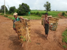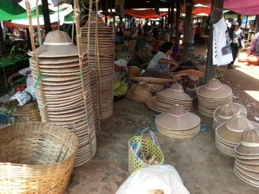 En la calle los locales con sus tradicionales sombreros de paja y su ¨don ganh¨, nombre que recibe la omnipresente vara de bambú con un cesto de arroz o fruta colgado en cada extremo. Esta foto conjuntamente con la de infinidad de cestería, se repetiría en las más de dos semanas del visita por el país, ni que hablar con mucho más fuerza en las zonas rurales y comerciales del delta del río Mekong en el sur.