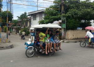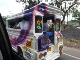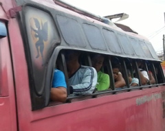 Pero a medida que pasan los días nos vamos haciendo la idea de como es su cultura en general. En cuanto llegamos a su capital, Manila, tomamos un avión y nos fuimos a la isla de Cebú, una vez también capital del país, y una de sus islas más pobladas. De Manila sólo sabemos lo que hemos visto en horas y lejos del centro, que coincide con lo que mi primo Fernando me había dicho: caos y desorden!. Transporte desordenado y tránsito caótico; motos, motos con cajuelas, camionetas coloridas y tuneadas con cajuelas, autobuses sin ventanillas decorados y antiguos, TODOS esos transportes siempre atiborrados de gente apretada donde el espacio parece tener otro límite. Entre tanto color y desorden se ven algunos buses modernos con AC y wifi, los menos… Gasolina al precio al que estamos acostumbrados para un país sin petróleo, USD 1,25 por litro, diesel USD 1.