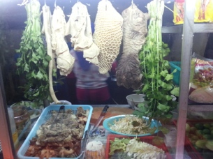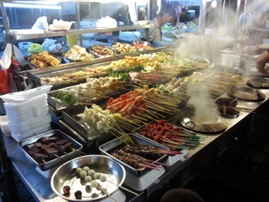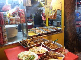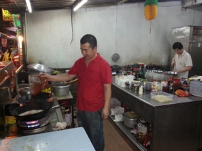 Mi primera experiencia en la calle, un chino recomendado por la Lonely Planet (al que Raúl no sé porque insistió en experimetar!) al que por sus condiciones aparentes de higiene jamás hubiera ni mirado!. Nadie hablaba más que mandarín (creo yo), y parecía no importarles hacer todo lo que nunca nadie haría para atraer clientes, e incluso frente a nosotros los clientes. La cocina casi que en la acera, la mitad hacia fuera para lavar platos, la otra mitad para cocinar y cortar todo tipo de animales, vegetales, etc etc. La conclusión, una delicia y una experiencia de desapego total!.