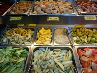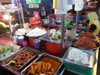 » Alimentarse es un acto esencial e imprescindible para el ser humano, sin el cual no puede subsistir. Las diferentes civilizaciones han convertido este acto en algo placentero, a veces ceremonial, que va más allá de saciar el hambre. Las dietas de los diferentes pueblos o etnias se escogen de acuerdo a los climas, suelos y creencias. En Malasia, como lo comenta Juan Martín hay una convivencia étnica de malayos, chinos e indios, cada cual con su cultura gastronómicas y las correspondientes fusiones. Hoy estamos en el norte de Malasia, en la isla Pulau Perhentian Kecil, una maravilla de isla tropical con playas y corales increíbles, donde predomina la comida malaya. Describo algunas que nos llamaron la atención o que probamos. Aquí hay que olvidarse de los aromas y gustos de los condimentos mediterráneos como el orégano o el tomillo que son reemplazados por cilantro, lemon grass, guindillas, etc. El ajo, la cebolla están presentes, y la combinación dulce-salado es muy frecuente. Por ejemplo, ayer comi un roti canal (y es el único nombre que recuerdo) relleno de atún, con miel por encima. Es una especie de panqueque hecho con un masa muy parecida a la filo que extienden y colocan en una panquequera con algo que lubrica, sin gusto, lo rellenan con cualquier cosa que uno pueda imaginarse, lo van doblando hasta conformar un rectángulo de 10 por 15 centímetros. Muy bueno! Los rellenos pueden ser queso, huevos, fruta, pollo, combinaciones, etc. Otro ejemplo que probamos y nos resultó delicioso fue un curry de ananá y mango. comida vegetariana que combina verduras y frutas en una salsa caldosa de curry rojo en el punto medio de picante.